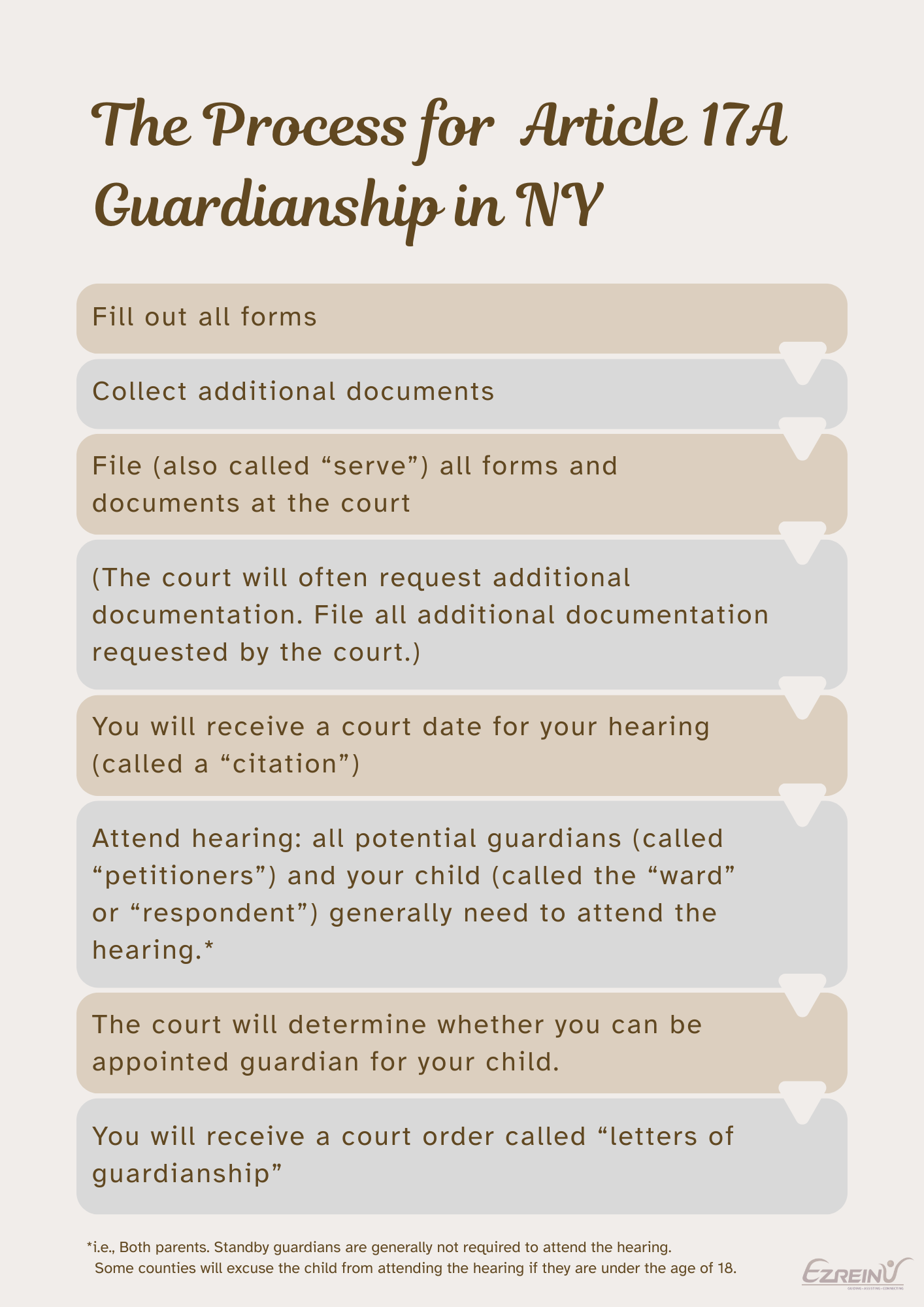 Call Ezreinu at 718-750-1010 for recommendations of New York attorneys who are experienced in filing for guardianship.